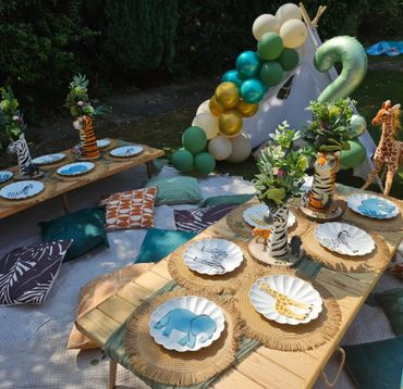✔️ Themed luxurious tableware (Meri Meri) & seating